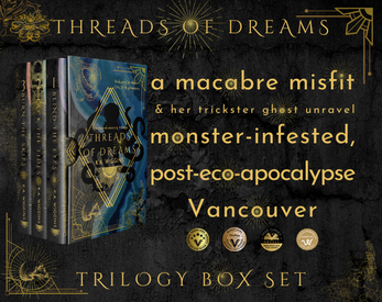 A multi-awarded gothic-dystopian YA+ Dark Fantasy series by a Best Canadian Fantasy & Science Fiction & Best New Weird Horror-acclaimed author about a macabre misfit & her trickster ghost taking monster-infested, post-eco-apocalypse Vancouver (& beyond) by storm.